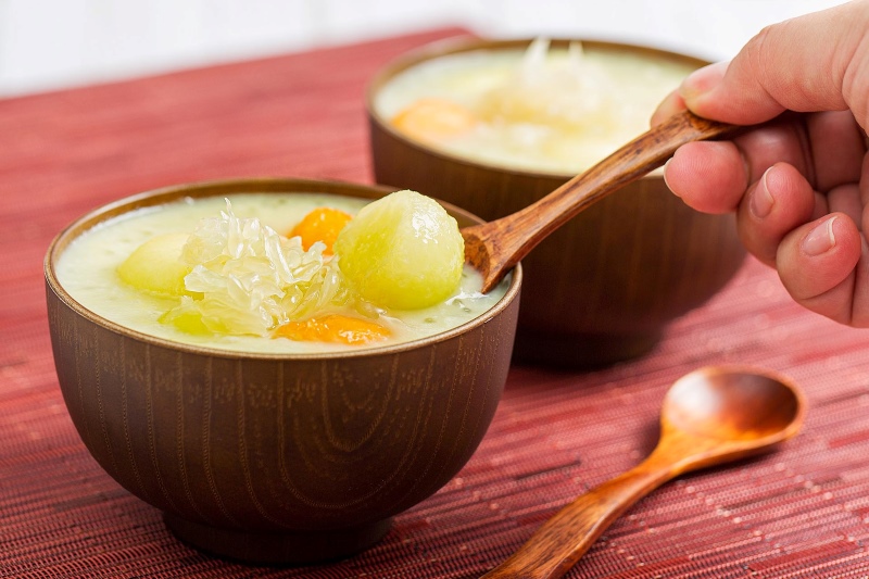Một món ăn độc đáo nhưng cũng quen thuộc khác mà bạn cũng có thể lựa chọn để chiêu đãi bản thân và mọi người trong gia đình đó là chè dưa lưới. Món chè thơm mát với vị ngọt nhẹ, thơm béo của nước cốt dừa, hứa hẹn sẽ khiến cả nhà đắm đuối mãi không thôi.